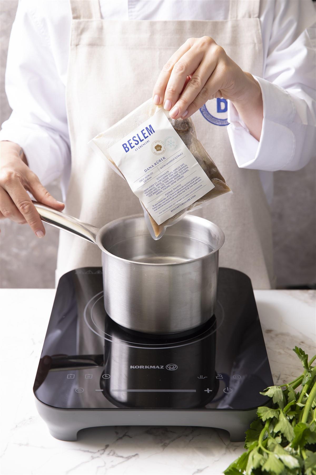 Pişirme Önerisi : Bir gece öncesinden +4 luk buzdolabına alın ve ürünü çözdürün. Gıdaya uygun, ısıya dayanıklı olarak vakumlanmış Dana Kürek paketini ocak üzerinde kaynayan sıcak suyun içine atıp 15 dakika kısık ateşte ısıtın.